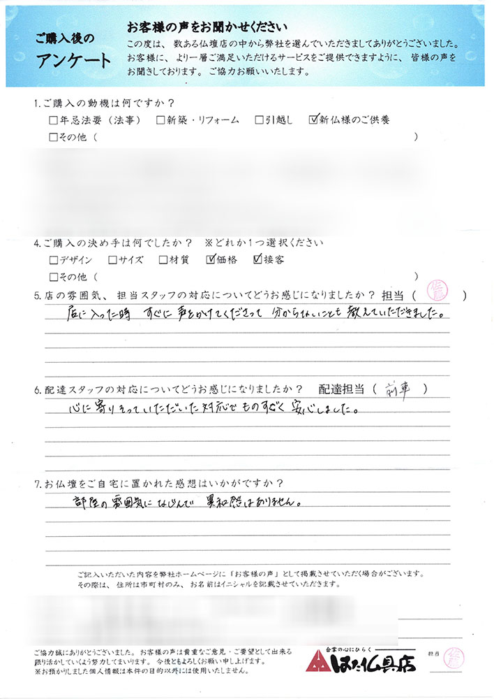 大きさは小さくなりましたが、無事にご先祖様をお迎え出来そうで、はた仏具店さんにお願いして良かったです。