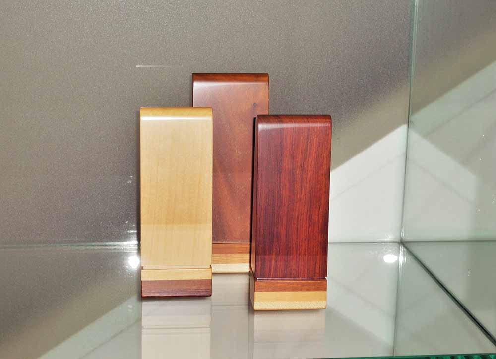 こんにちは。現代仏壇ギャラリーメモリア長崎より北川が更新致します。 本日は、私のお気に入りのお位牌「マカルー」をご紹介致します。4種類の天然木の美しいグラデーションが印象的な「アンナプルナ」・「マカルー」・「ローツェ」。 私のオススメは、ブビンガを使用した「マカルー」。ブビンガ独特の木目、赤褐色で少し紫色を帯びた美しい色。ダーク色の現代仏壇と相性が良いので、よくご提案しております。