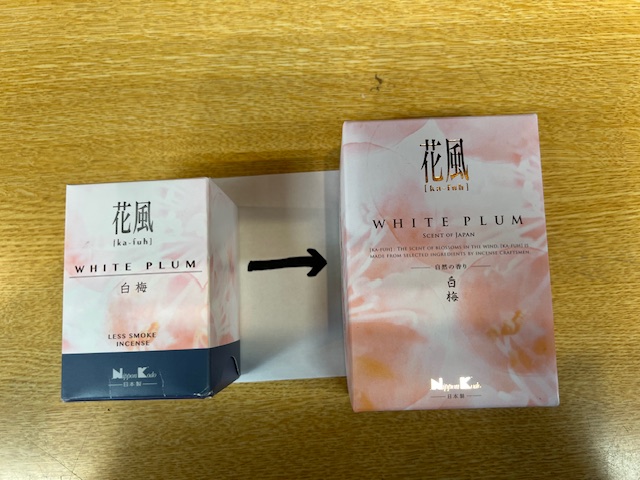 皆様こんにちは、11月に入り気温がぐっと低くなり紅葉が一気に進んでいますね(^-^)ただ空気も乾燥が進む頃ですのでウイルス対策もしておかないといけない時期でもあります。 さてタイトルの仕様変更ですが花風白梅のミニがスタンド型から平箱タイプに変更になりました。 価格も¥847から¥880に変更になります。 香りに変更はございませんのでスタンド型同様平箱型もご愛顧賜りますようお願い申し上げます。 今日は、線香・ローソク担当田縁からお知らせでした。 |